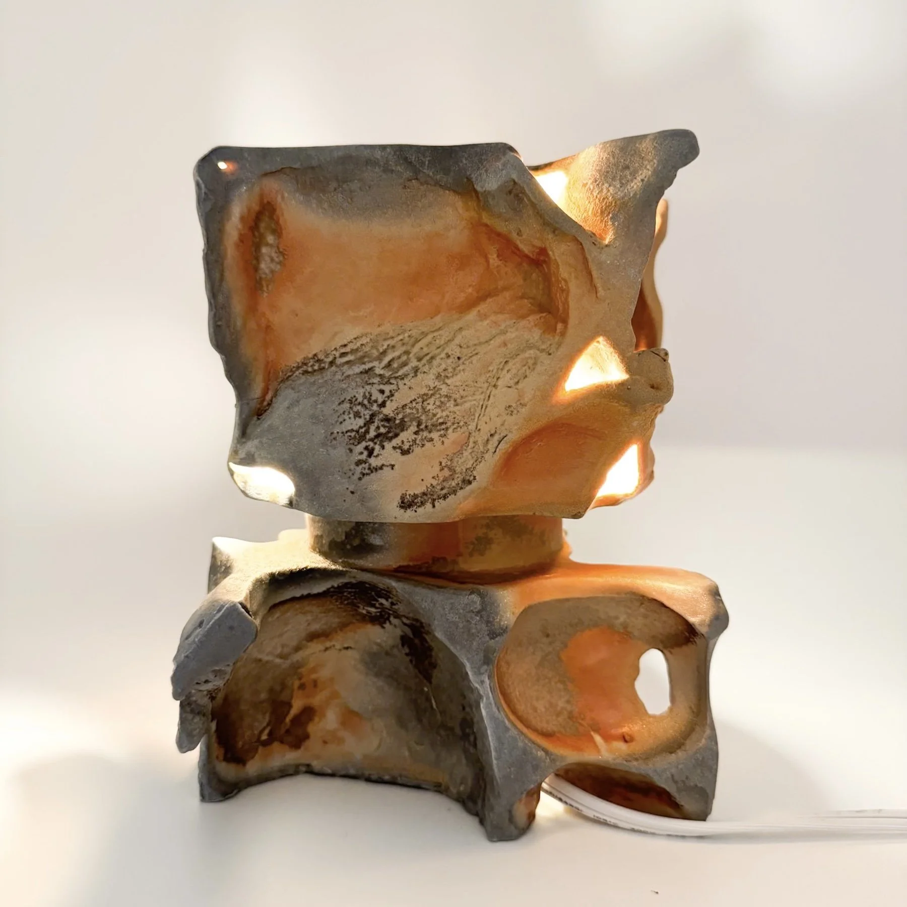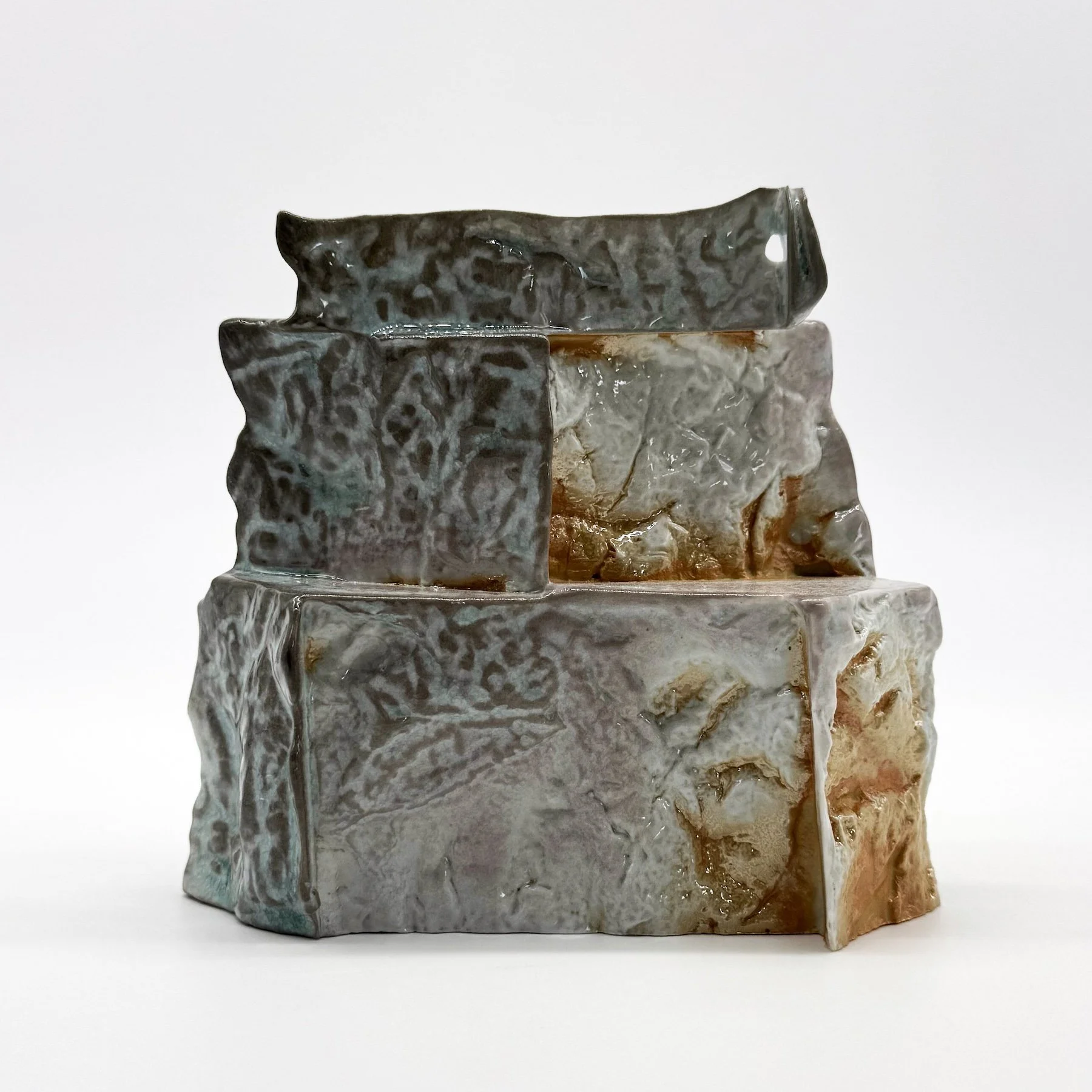 This series of work allows me to understand my observations and curiosities within the landscape. Moments I am not involved in but intrigue me. For example, the way water sculpts land, the way light filters through canyon walls, and the interaction between the stone of a river bed and the water above it. These curiosities become inspiration for slip casting. The process of mold making allows me to capture details and moments beyond the human touch. I have created a library of textures and forms made directly from these environments and elements. These observations become interchangeable molds. These module molds can create an infinite number of forms while working within the same idea
